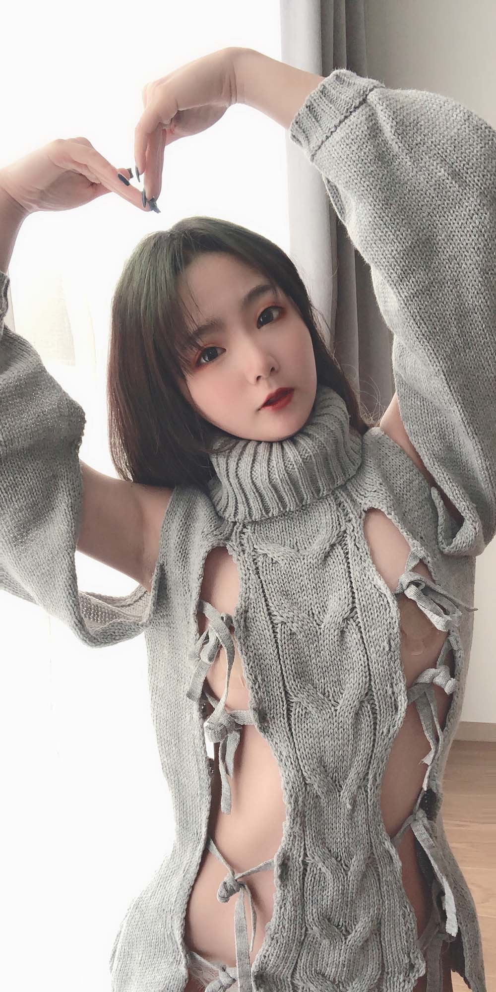 萌妹是青水 – 露背毛衣