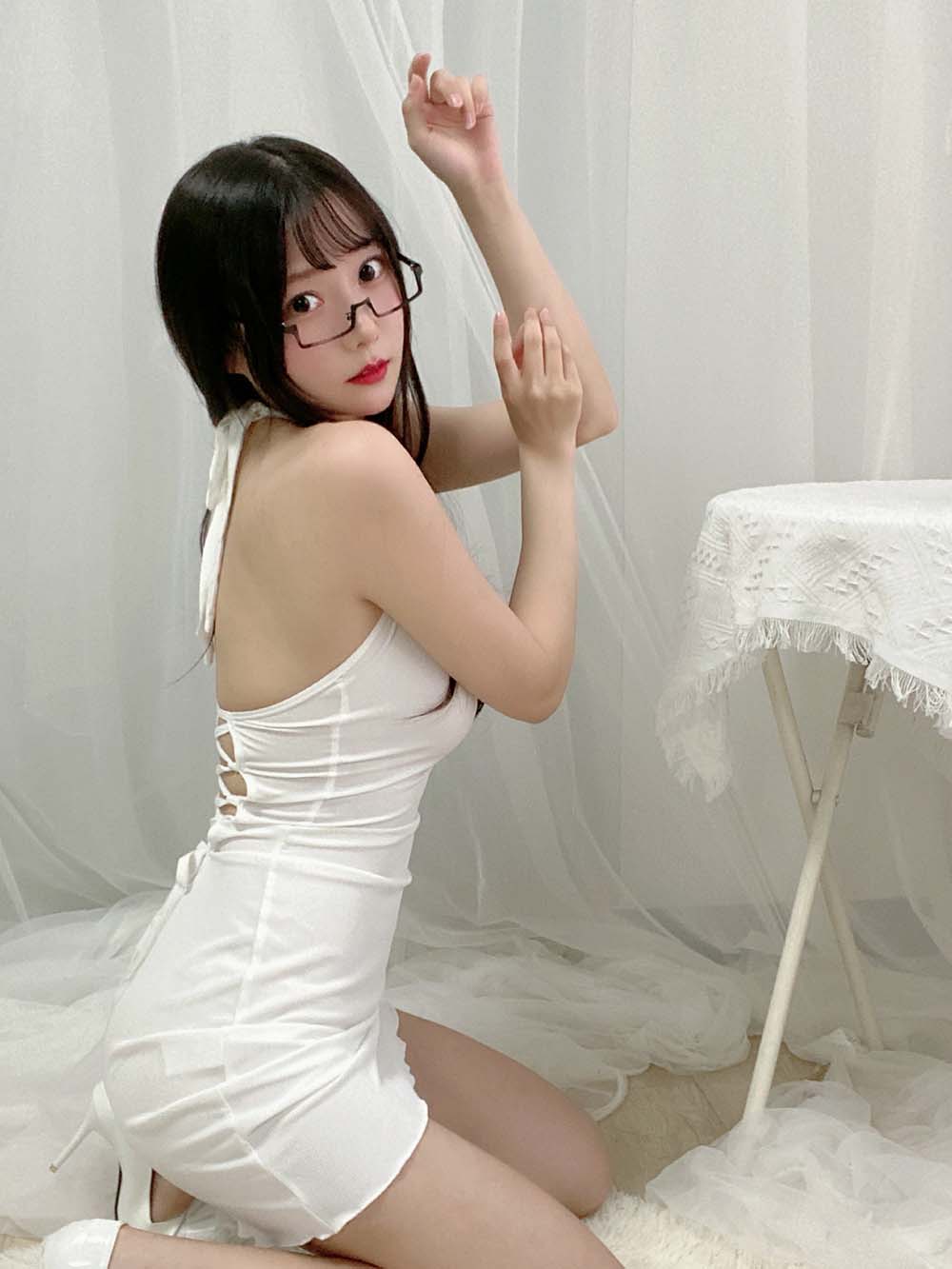 香草喵露露 – 白短连衣裙